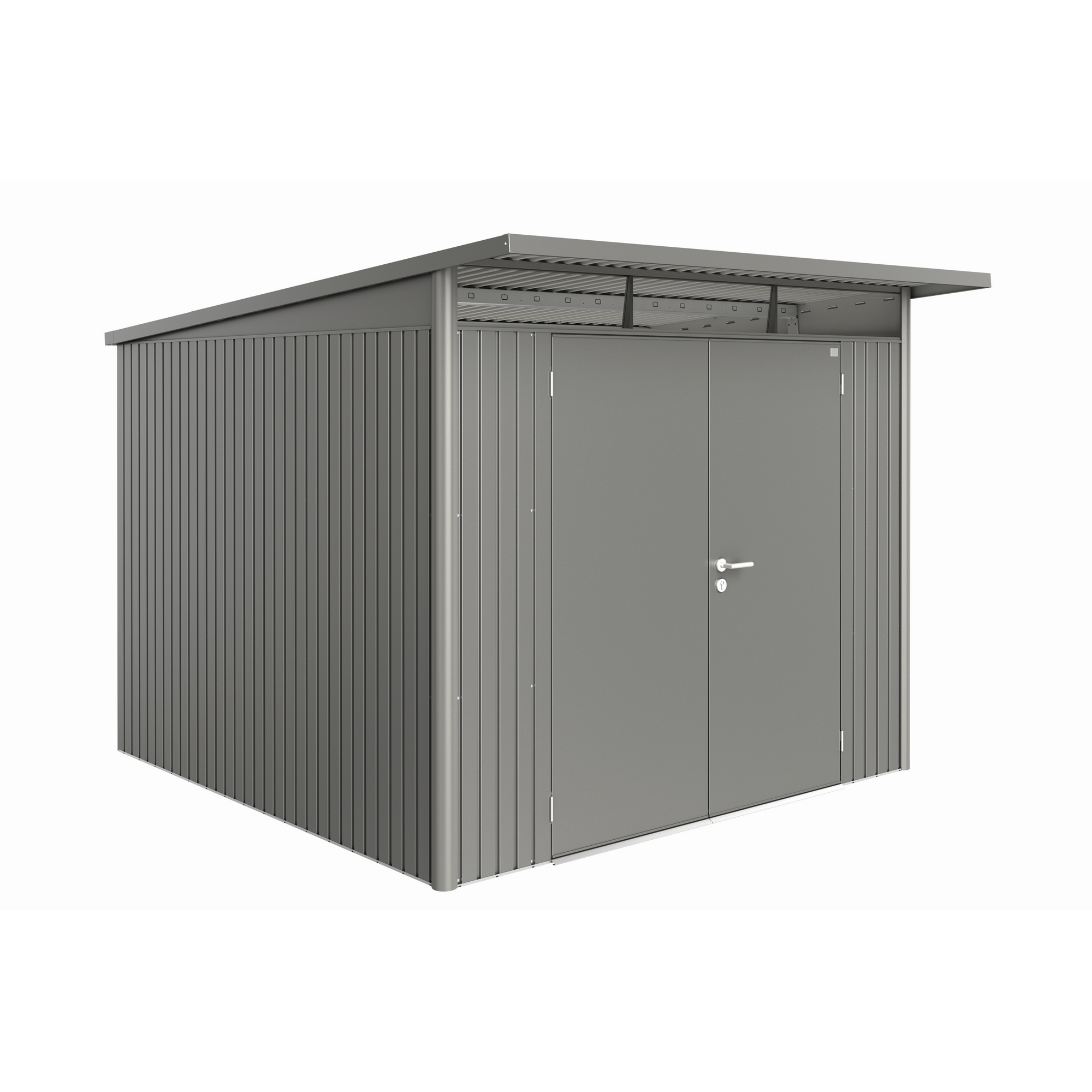 Das Biohort Gerätehaus „AvantGarde“ in der Größe A7 (quarzgrau-metallic, 260 x 300 cm) ist eine hochwertige und funktionale Lösung für die Aufbewahrung von Gartengeräten, Fahrrädern und anderen Utensilien.